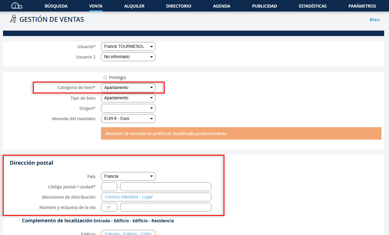 Se abre el formulario Como mínimo, debes: Modificar tu búsqueda: 1. Elegir la categoría de la propiedad 2. Completar la dirección postal de la propiedad NB: No olvides hacer clic en "Validar" (en la parte inferior de la página)