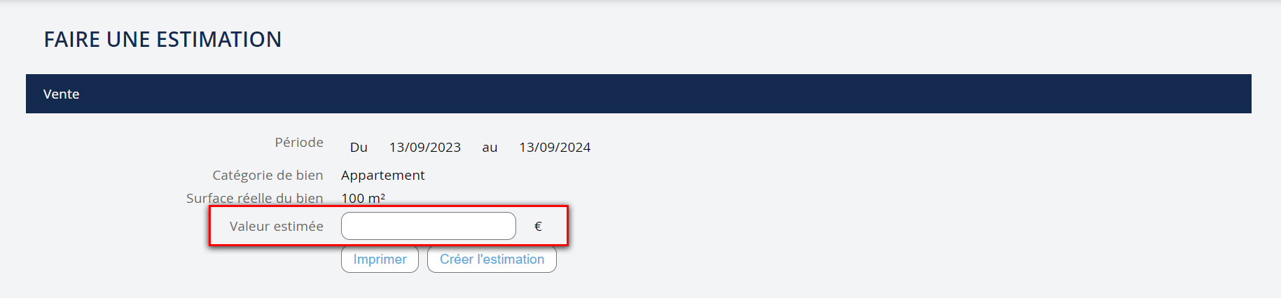 - Notez la Valeur estimée - puis cliquez sur "Créer l'estimation".