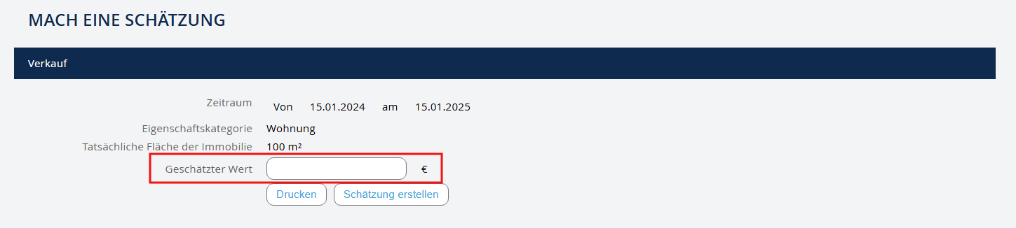 - Notieren Sie den geschätzten Wert - und klicken Sie auf "Schätzung erstellen".