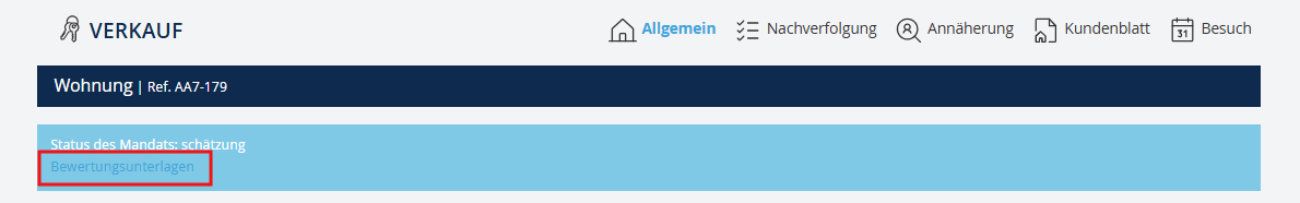 Die Erstellung des Schätzungsdossiers erfolgt durch die Nachverfolgung der Immobilie und Klicken auf "Schätzungsdossier". In diesem neuen Formular können Sie die Argumente angeben, auf denen Sie Ihre Wertschätzung basieren. Klicken Sie dann auf "Weiter", um Ihr Schätzungsdossier zu erhalten.