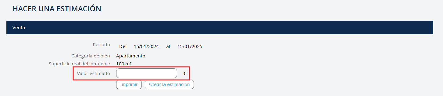 Para finalizar el registro, debe completar al menos los siguientes campos: - La dirección - Los nombres de los propietarios - El número de habitaciones Cuantos más campos complete, más completa será su ficha de estimación. NB: Encontrará todas sus estimaciones en el submenú.