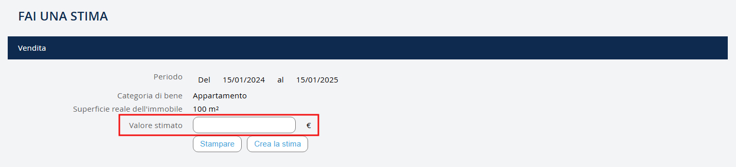- Annotare il valore stimato - poi fare clic su "Crea la stima".