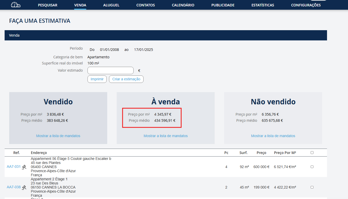 O cálculo das suas estimativas é baseado nos seus arquivos de vendas ou alugueres, bem como no arquivamento dos seus bens de forma geral. Por isso, é aconselhável prestar atenção especial para aproveitar 100% da fiabilidade das suas estimativas.