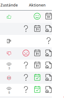 Aus Ihrem Dashboard können Sie die Spalte „Staaten“ (1) finden. Sie ermöglicht es Ihnen, auf einen Blick die Antworten Ihrer Kunden nach dem Versand eines Blattes zu sehen, sodass Sie ihre Rückmeldungen in Echtzeit verfolgen können. Hinweis: Diese Funktion ist nur für Kundenblätter mit dem Namen „Immobilienblatt Nr. ...“ von Nr. 1 bis Nr. 6 verfügbar. Wenn Sie im Abschnitt „Meine Aktionen“ auf „Fiches client envoyées J-2“ klicken, erscheint eine Liste der vom Verhandlungspartner innerhalb der letzten 2 Tage gesendeten Kundenblätter (Sie können den Zeitraum im Feld Periode (2) ändern, wenn Sie Ihre Suche erweitern möchten).