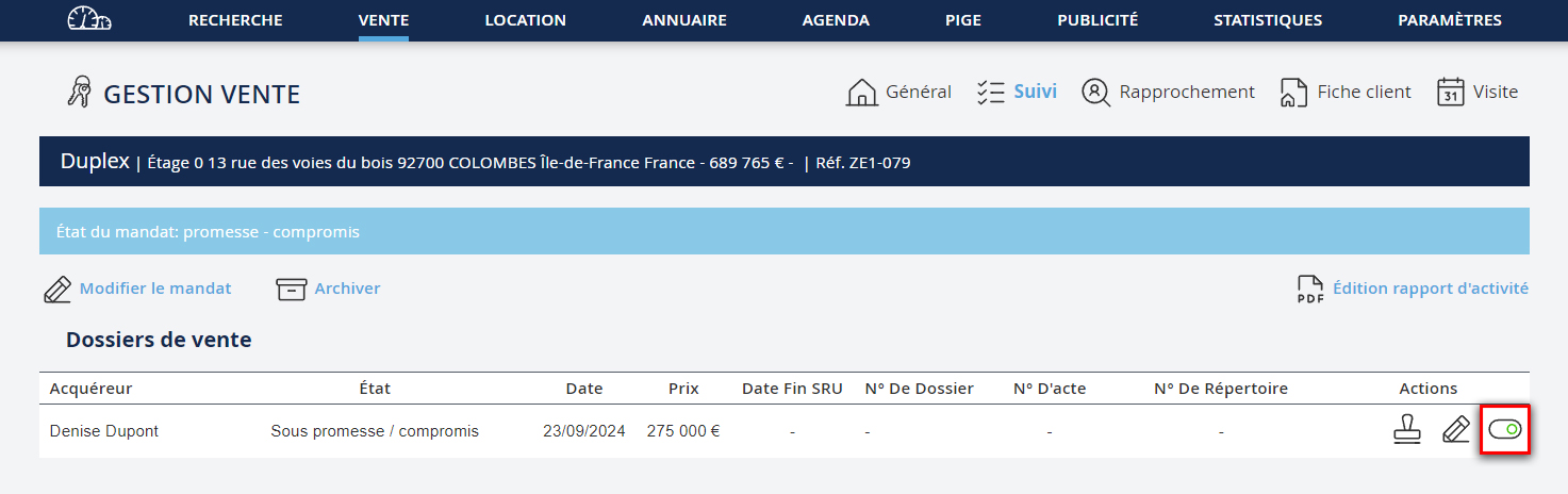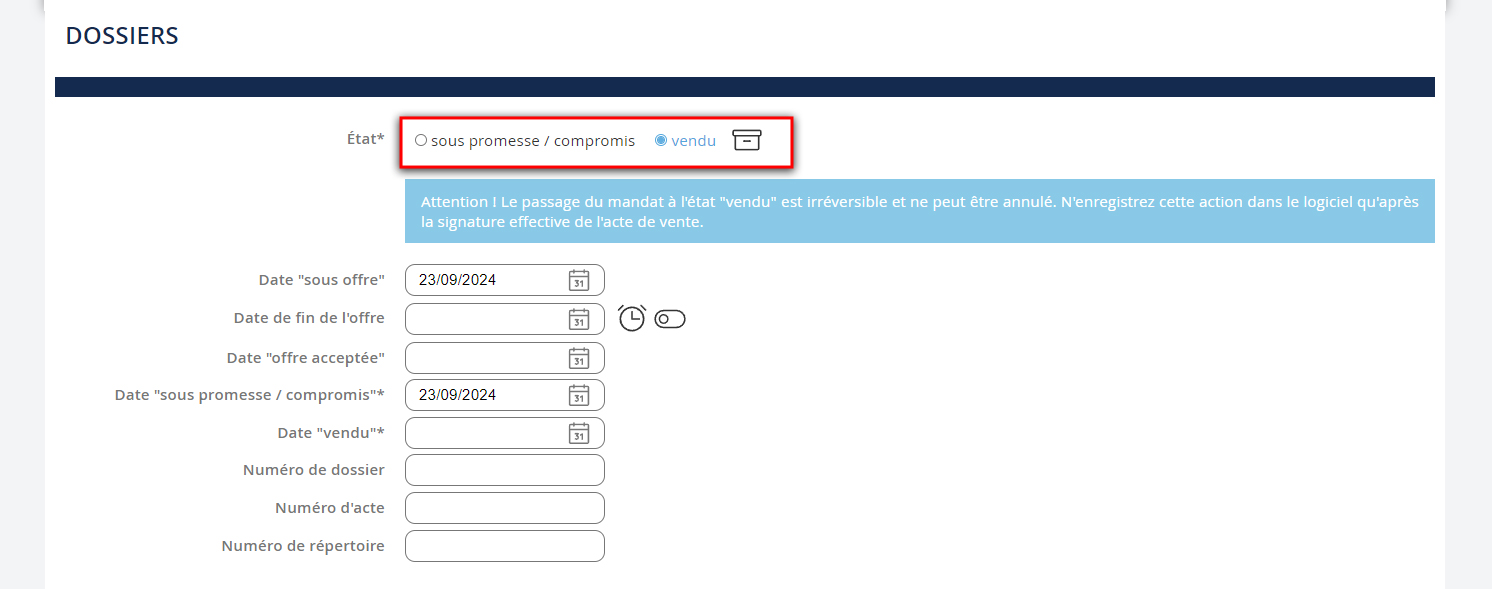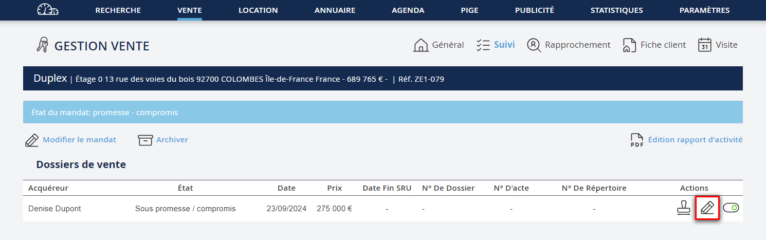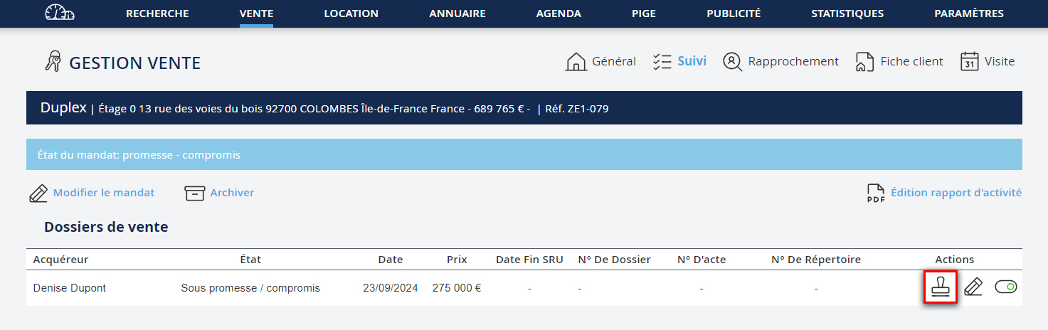 L’enregistrement d’une offre d’achat, d’une promesse ou d’un compromis de vente, passe par la création d’un dossier de vente.