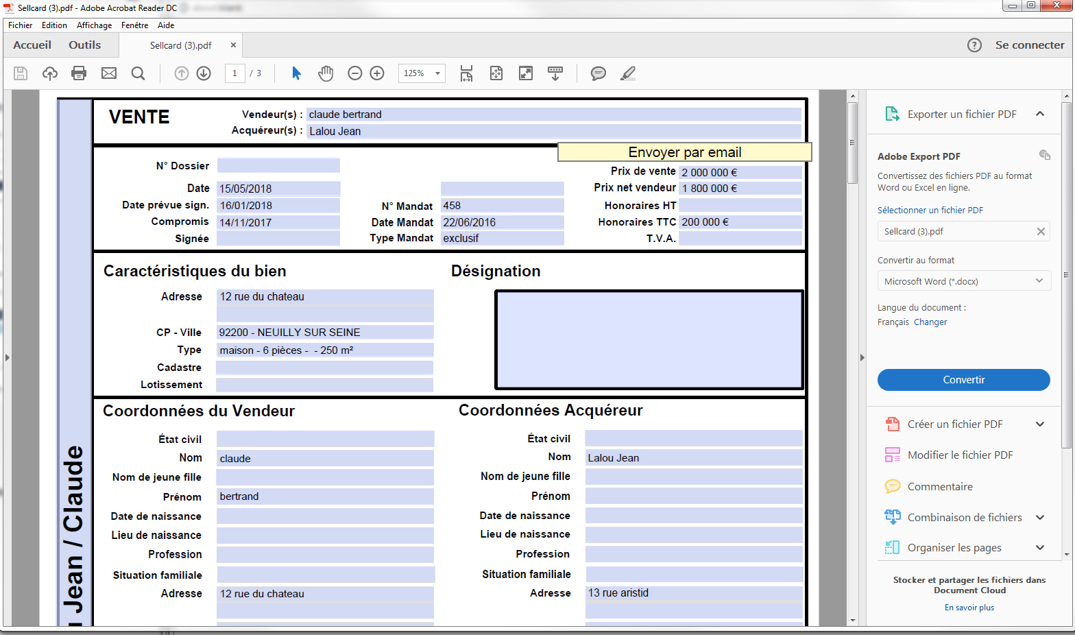 Etape 3 : éditer le dossier - Le dossier s’ouvre au format .pdf modifiable - Vous pouvez l’imprimer ou l’envoyer par mail