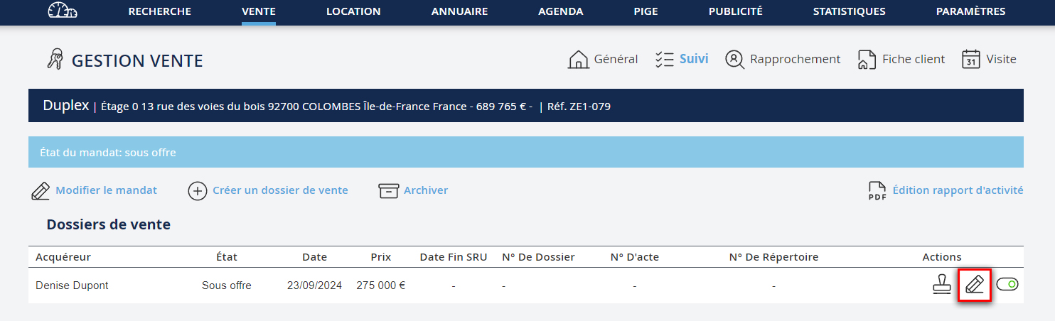 Etape 2 : ouvrir le dossier de vente