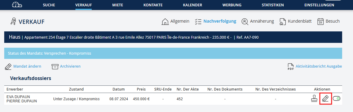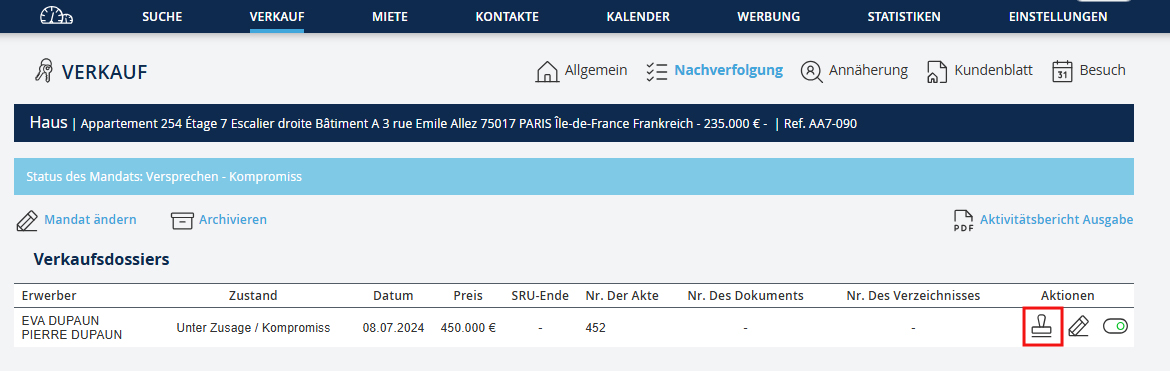 Schritt 2: Die Verkaufsakte öffnen