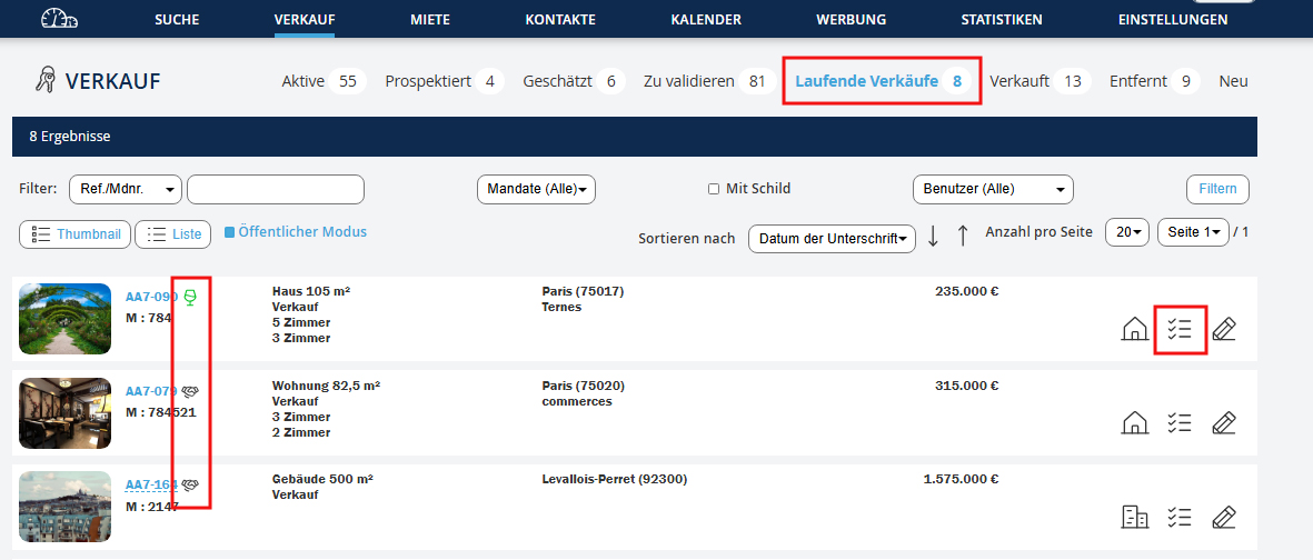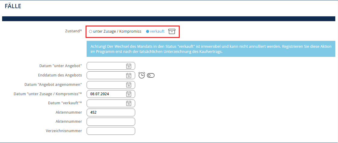 NB: Die Immobilie wird automatisch im Untermenü Verkauft archiviert.