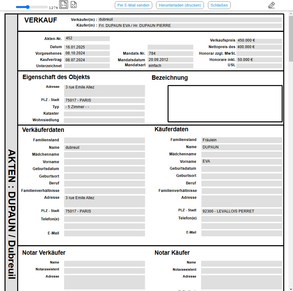Eine Verkaufsakte erstellen "