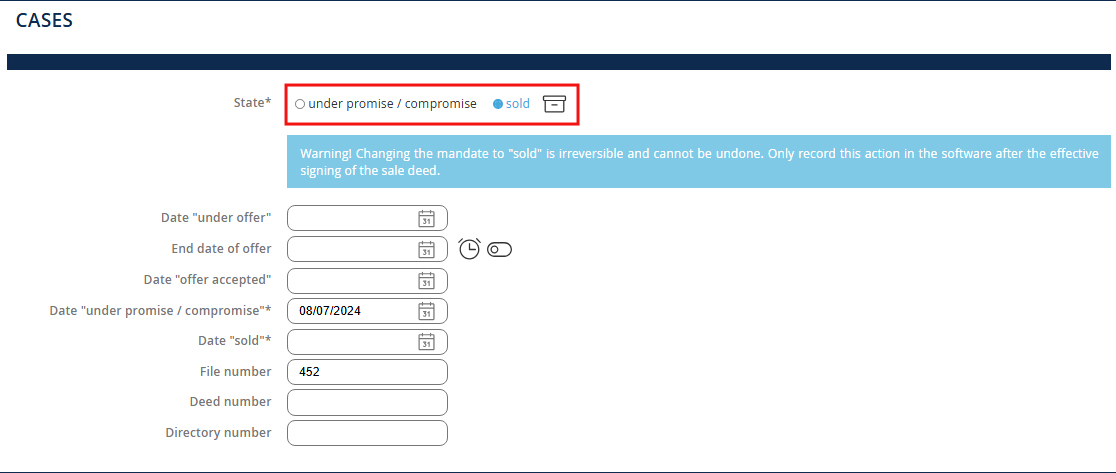 NB: The property is automatically archived in the submenu Sold.