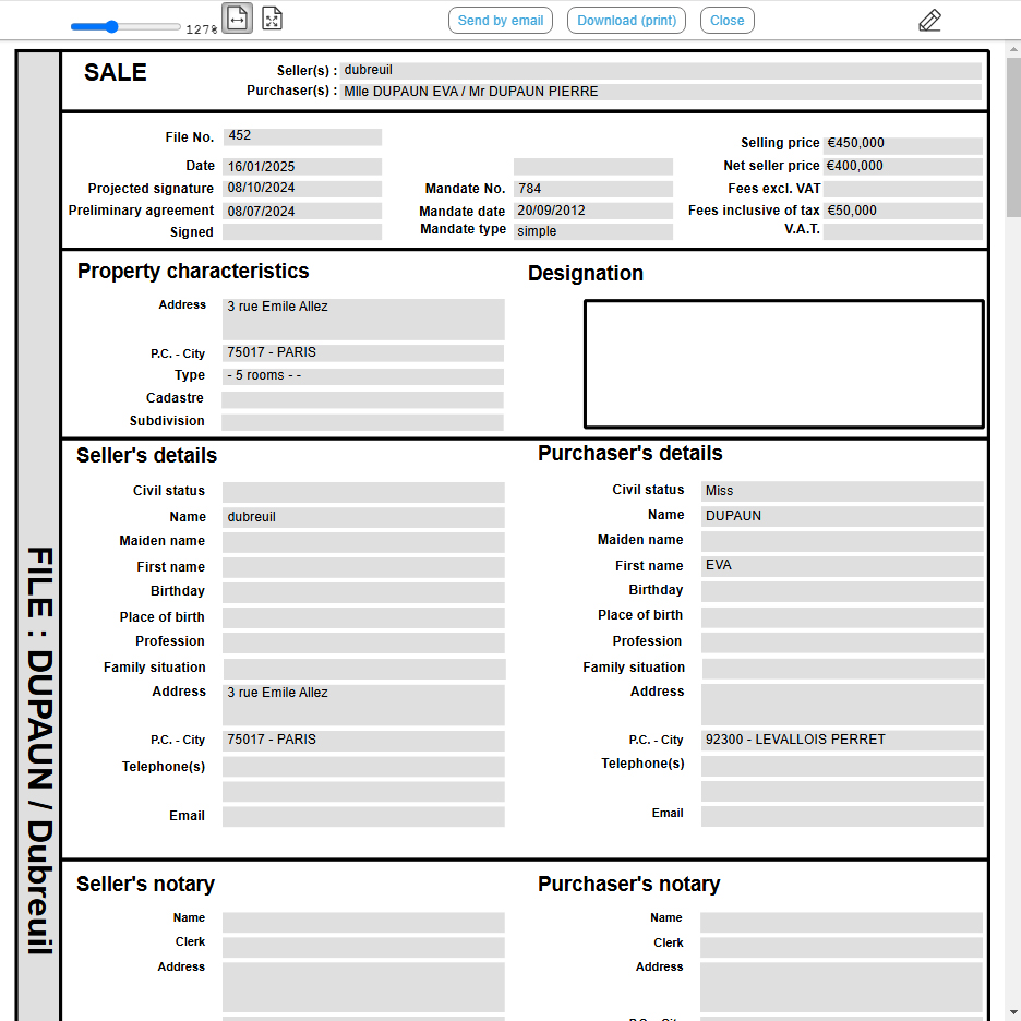About closing a sales file When you close a file, it deletes the sales file. The mandate is no longer under offer nor under promise/compromise, and it returns directly to the active mandates.
