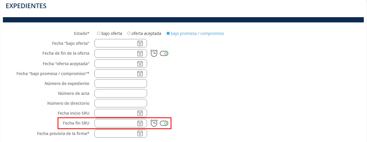 NB: Para ayudarte a hacer un seguimiento de tus archivos, te recomendamos que dejes marcadas las casillas de alerta cuando registres fechas de SRU, aprobación de préstamos, etc., para crear recordatorios en tu panel.