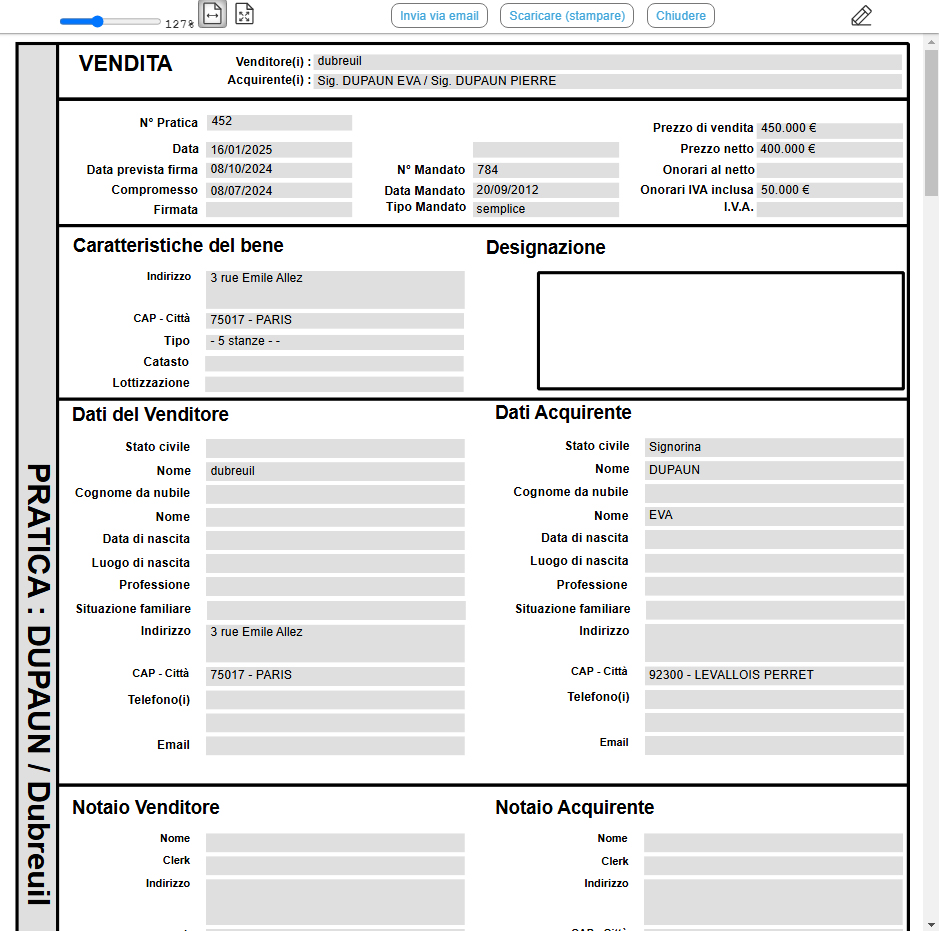 NB: La proprietà viene automaticamente archiviata nel sottomenù Venduto.