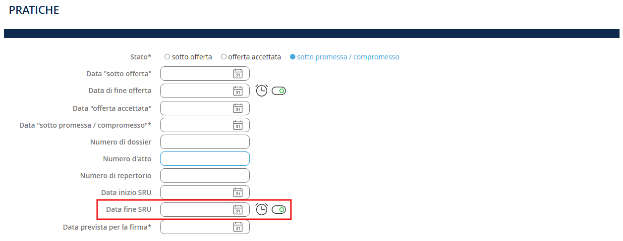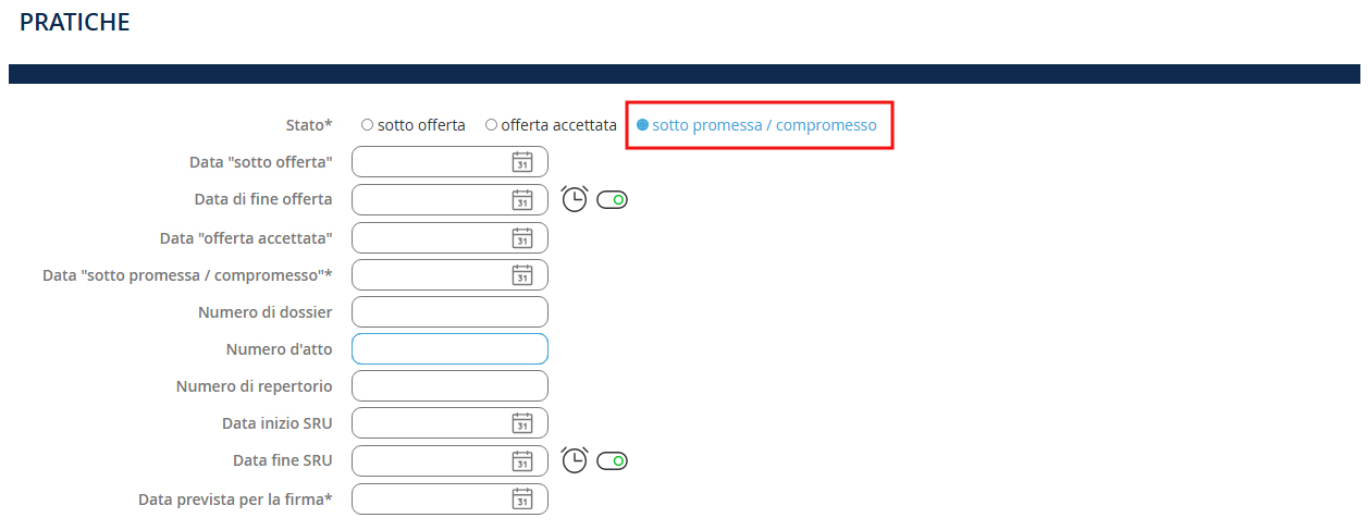 Devi almeno: 1. Selezionare lo stato del tuo file: Sotto offerta, Offerta accettata, o Sotto promessa / compromesso