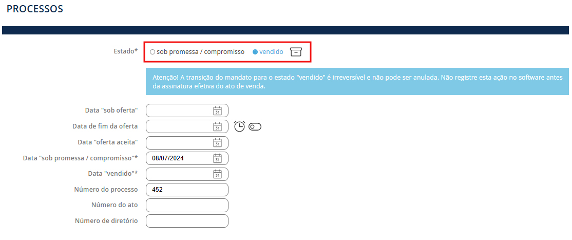 NB: O imóvel é automaticamente arquivado no submenu Vendido.