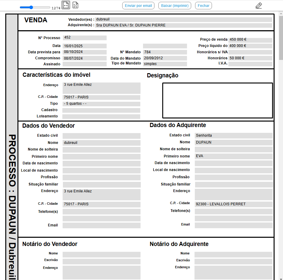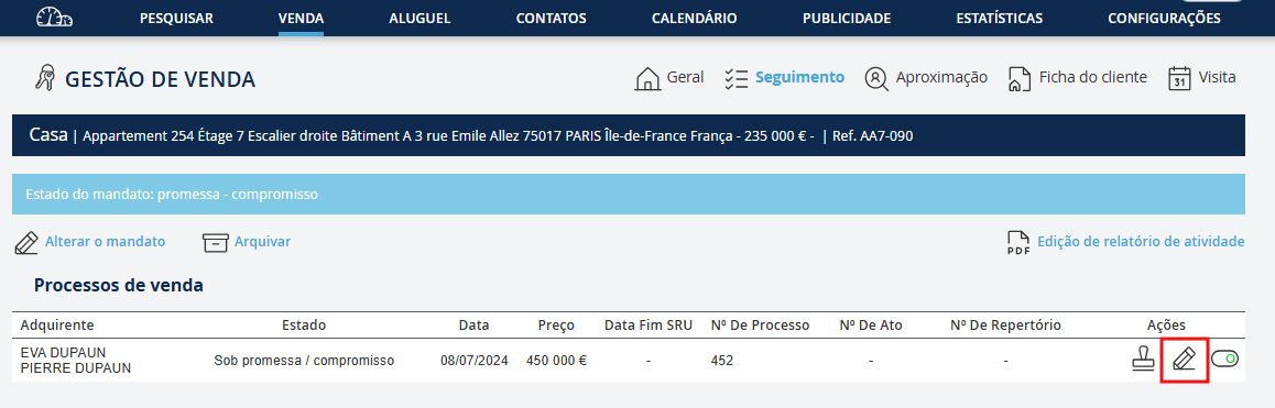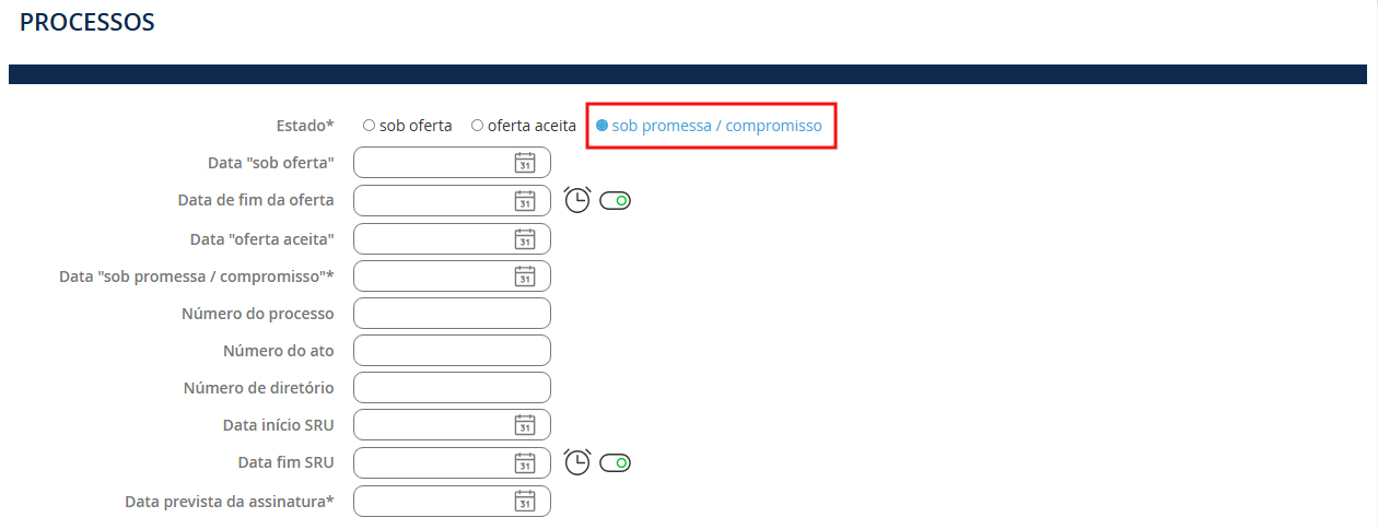 O registo de uma oferta de compra, uma promessa ou um compromisso de venda, passa pela criação de um processo de venda.