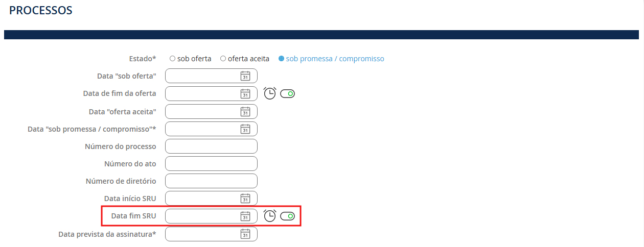 NB: Para ajudá-lo a acompanhar os seus arquivos, recomendamos que deixe as caixas de alerta marcadas ao registrar as datas de SRU, aprovação de empréstimos, etc., para criar lembretes no seu painel.