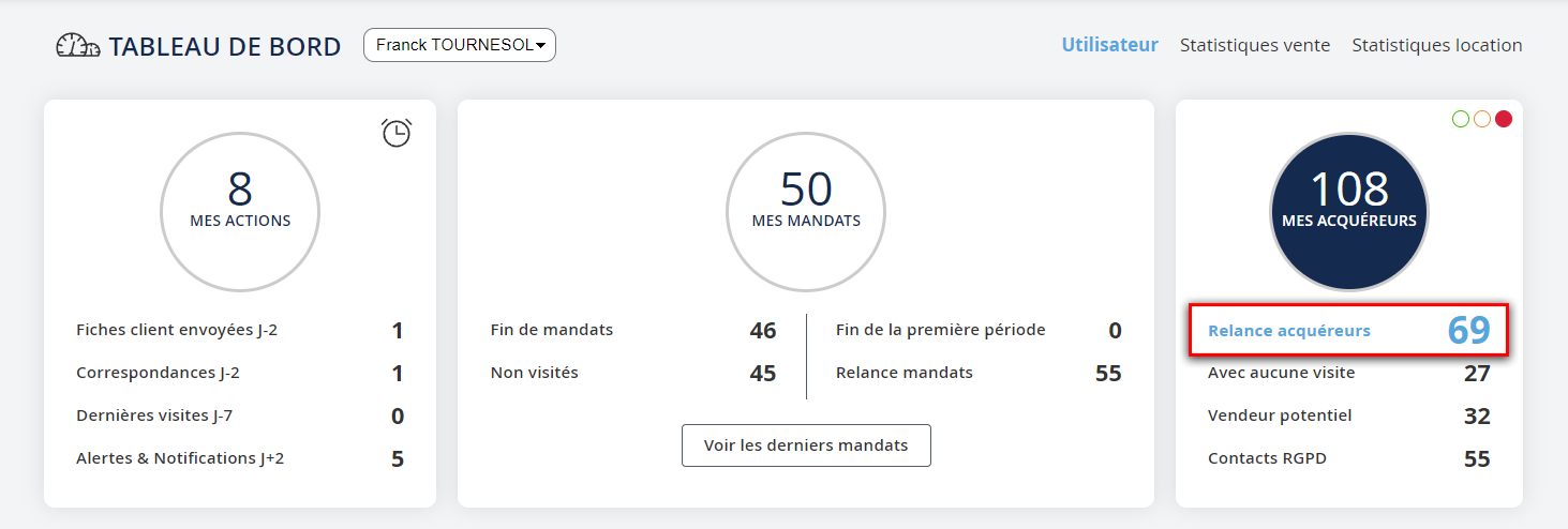 Plus de prétexte pour ne pas faire sa relance acquéreurs. Vous pouvez directement accéder, de votre tableau de bord, à vos relances acquéreurs !