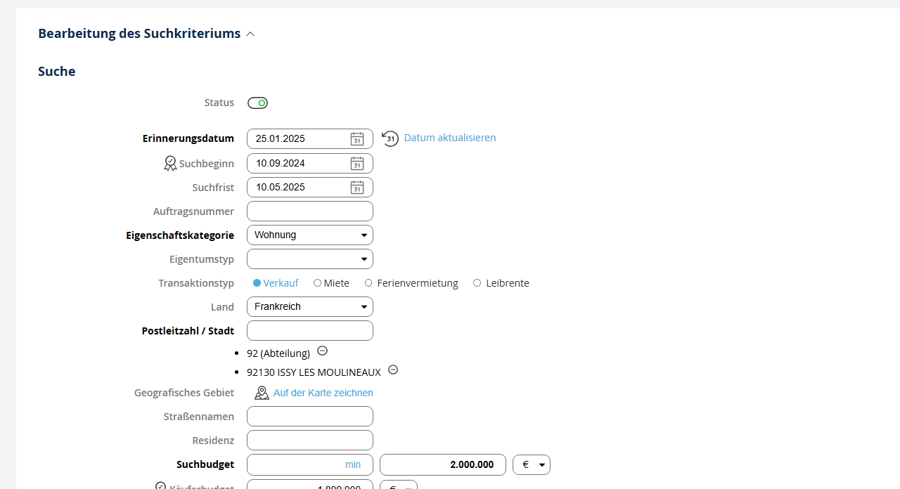 angezeigt wird, bedeutet dies, dass Ihr Kunde nicht mehr auf der Suche ist. Wenn ein