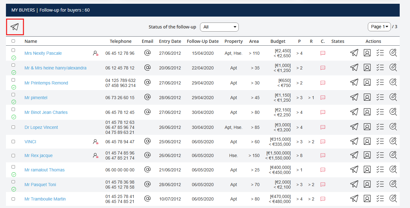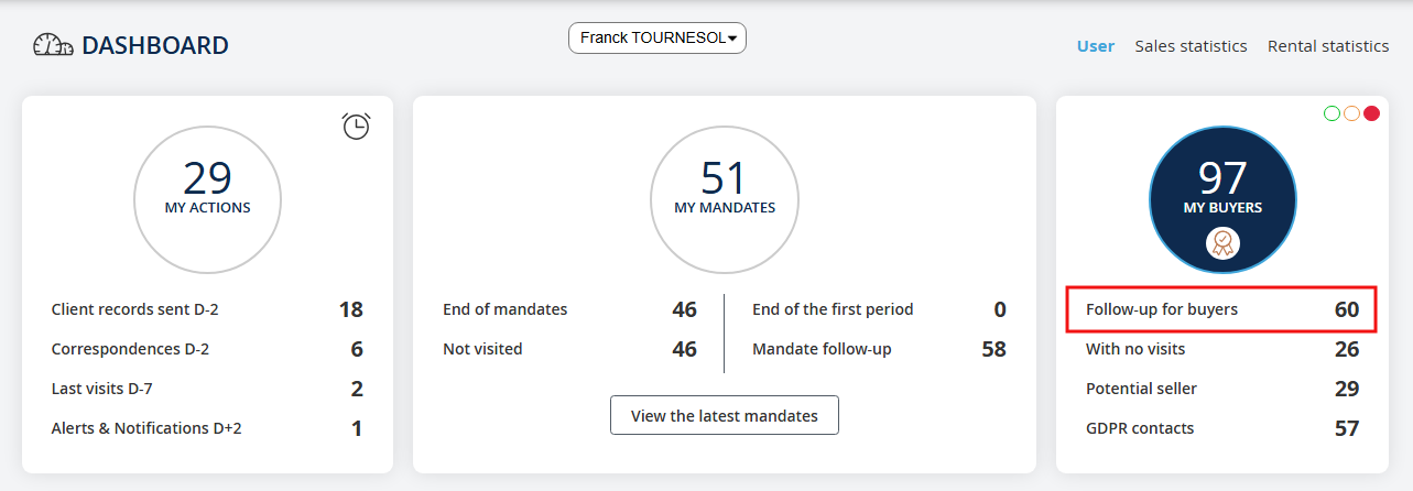 By clicking on "Buyer Follow-up" you will reach the list of clients to follow up with.