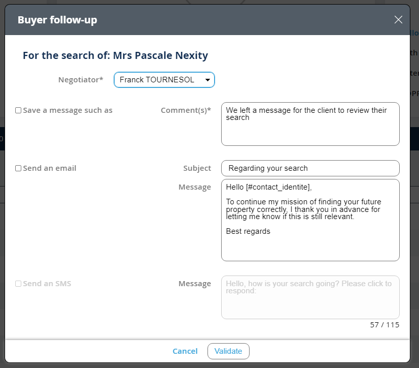 To increase the quality of your buyers' client file, it is important to check your buyer follow-up section daily.