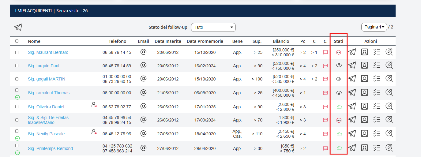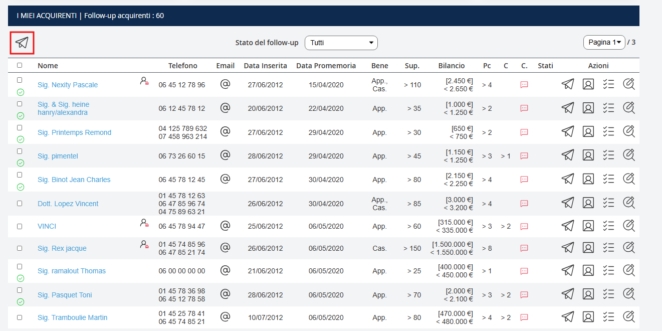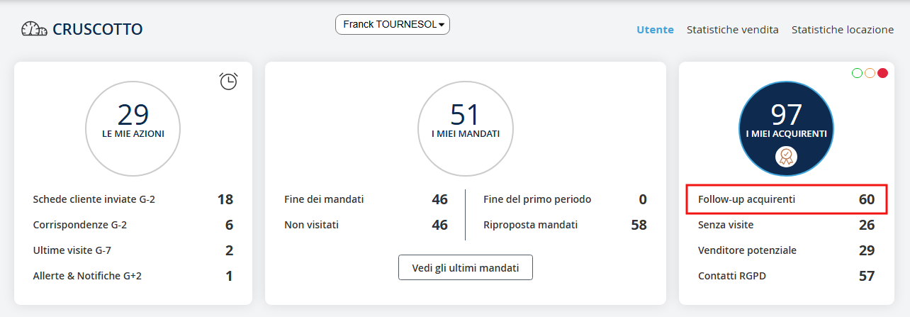 Cliccando su "Follow-up Acquirenti" arriverete alla lista dei clienti da ricordare.