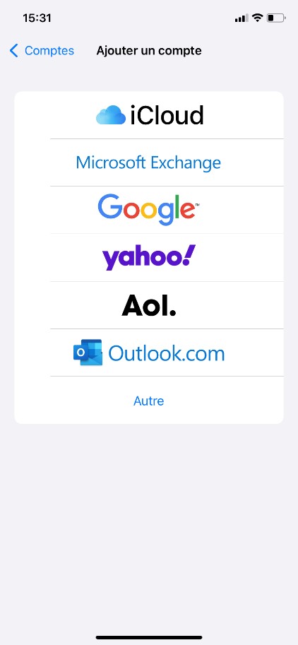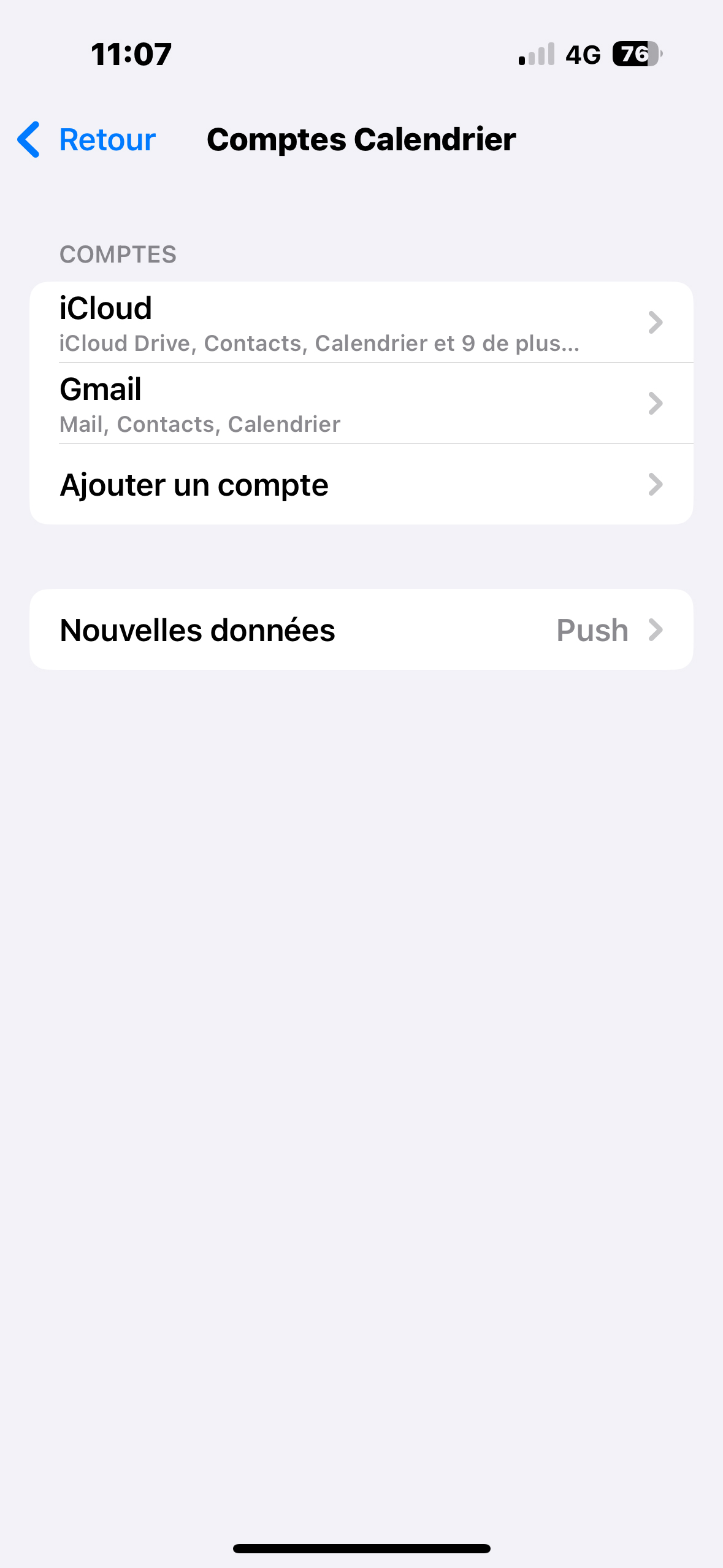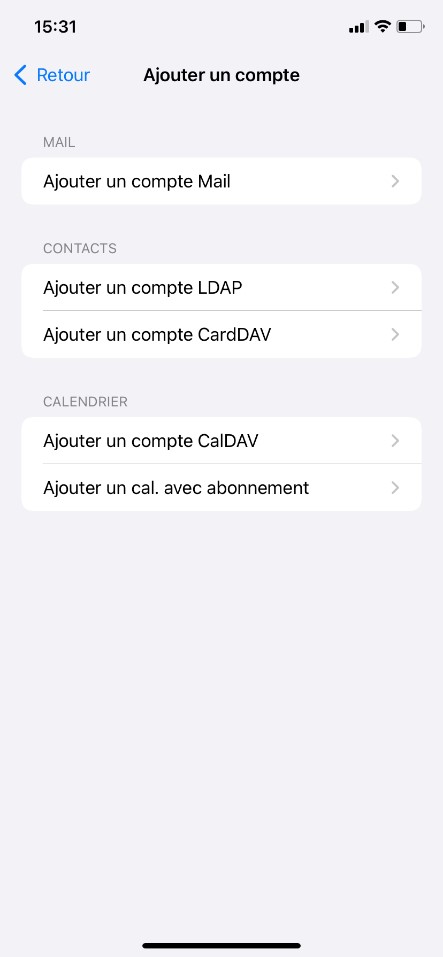 - puis cliquez sur "Apps" > "Calendrier" > "Comptes Calendrier" > "Ajouter un compte" > "Autre"