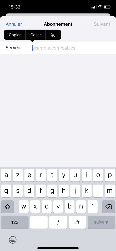 - Collez l'URL du calendrier que vous avez obtenu depuis le bouton "Exporter"