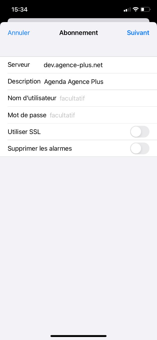 - Fill in the Calendar name field with something like "Agence-Plus" (this will be the name shown in your Android calendar app)