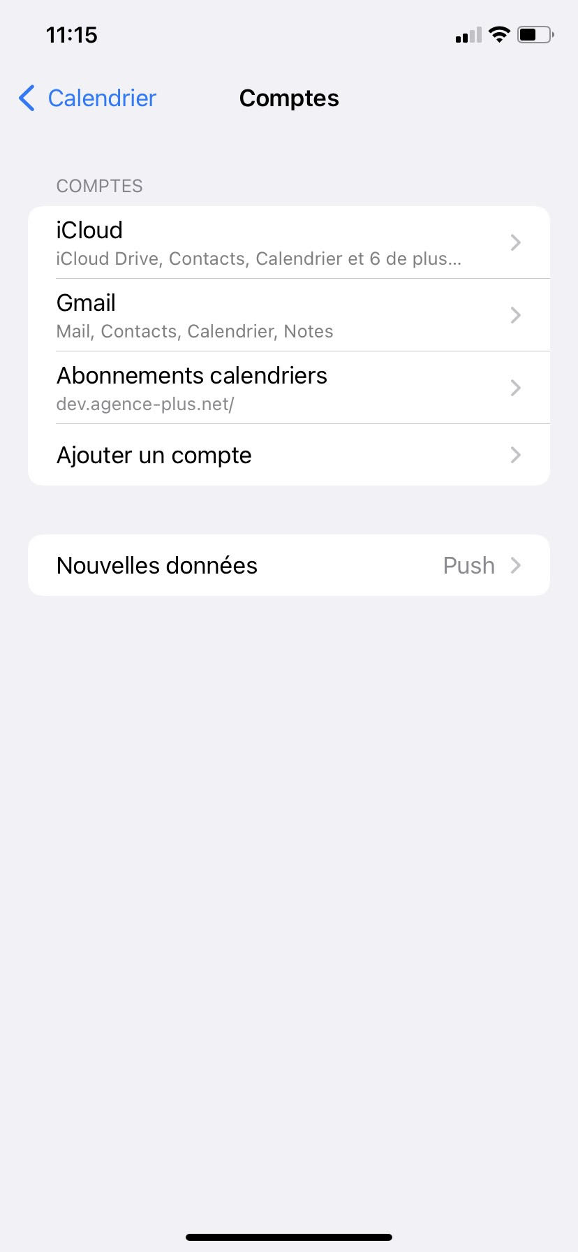 Celui-ci apparaît maintenant dans la liste des agendas de votre iPhone.